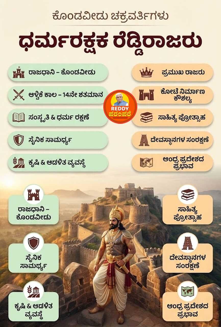 ಕೊಂಡವೀಡು ರೆಡ್ಡಿರಾಜರ ಧರ್ಮರಕ್ಷಣೆ, ದೇವಾಲಯ ಪುನರುಜ್ಜೀವನ, ಅಗ್ರಹಾರ ದಾನ, ಪ್ರಜಾಹಿತ ಆಡಳಿತ ಹಾಗೂ ತೆಲುಗು ಸಂಸ್ಕೃತಿಗೆ ನೀಡಿದ ಅಚ್ಚಳಿಯದ ಕೊಡುಗೆಗಳ ಸಮಗ್ರ ಪರಿಚಯ…